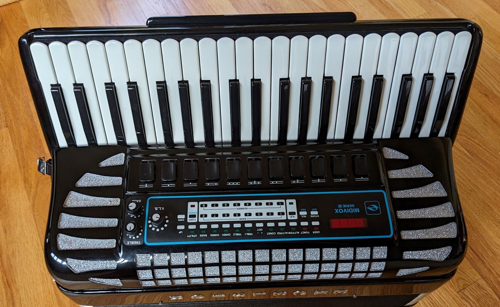 compression, and variety of concert and musette sounds. The MIDI can be used