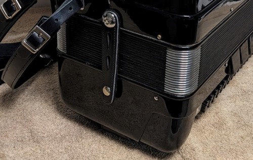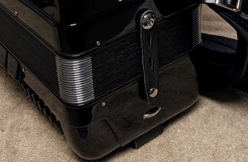 This Bell accordion sounds rich and clear. It is easy to play. The tuning is beautiful. The internal overtones and resonances will make your hearth sing. The bassoon is deep and "thick" as you would expect from a tone chambered instrument. The middle octave reeds are clear and strong. The piccolo adds brilliance to the tone. You can play a variety of music. Each treble and bass switch offers a unique blend and will "call" for certain tunes from your repertoire. Call 973-219-9259 with any questions, for a phone demo, or to schedule your visit to the Accordion Gallery where you can try the accordion yourself and compare it to many other fine vintage and new instruments.