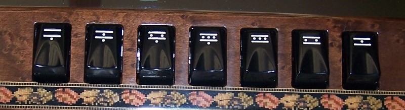 - 7 treble switches - Bassoon, Bandoneon, Accordion, Master,