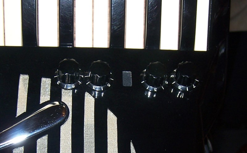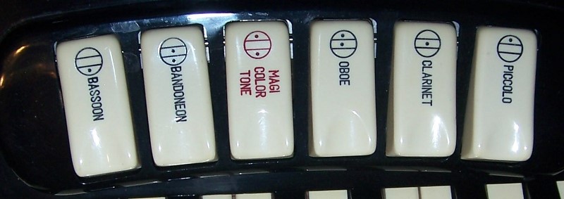 - 6 treble switches - Bassoon (L), Bandoneon (LM), Magi-Color Tone