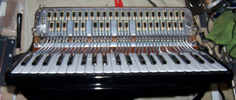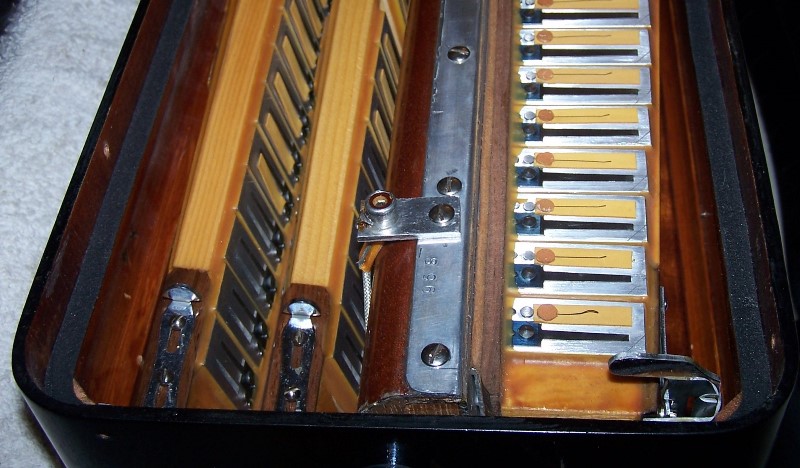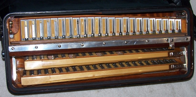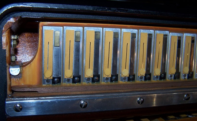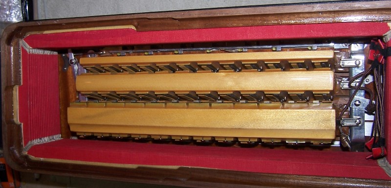 - 41 keys, 19-1/4" keyboard - American walnut keys with white key tops,